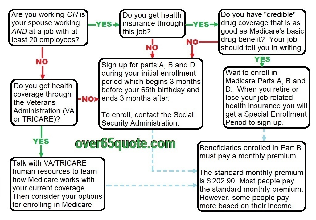 | Generally, if you have job-based health insurance through your (or your spouse’s) current job, you don’t have to sign up for Medicare while you (or your spouse) are still working. |